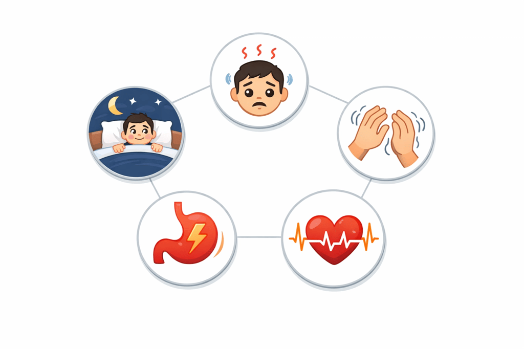 Insomnia is probably the most common and disturbing side effect of excessive consumption. Caffeine has a half-life that varies between 2 to 10 hours depending on individual metabolism, meaning that half of the ingested amount is still active in the body hours after consumption. A coffee consumed at 4 PM may still be interfering with sleep at 10 PM or even at 2 AM in slow metabolizers. Chronic sleep deprivation resulting from this creates a vicious cycle: the person feels tired and consumes more coffee, further aggravating insomnia.